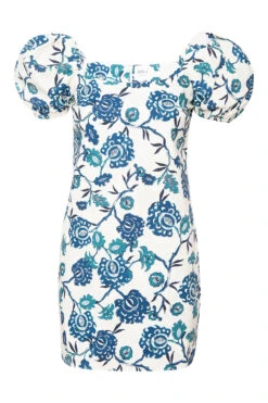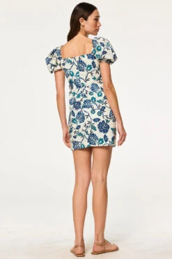 The Analie dress is a feminine mini cut from our Indigo Blooms cotton poplin. This flattering, fitted silhouette features a square neckline and short puffed sleeves with elastic cuffs. Designed as a pull-on style with a touch of stretch, it offers ease without compromising shape. Pair with strappy sandals or flats for a sweet, polished look.