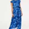Our new Claire dress is a dreamy maxi silhouette cut from black chiffon printed with a yellow rose motif. A split v neckline with petal tassel ties and a fully lined bodice with three-quarter sheer sleeves featuring a wide ruffle cuff. The perfect dress for fall weddings and beyond.