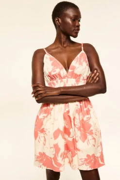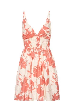Ezra is a flirty, feminine mini cut from cotton poplin in our Coral Blooms print. Designed with scrunched stretch straps and a flattering V-neckline, it features a ruched band under the bust and a gently flared skirt. The open back and pull-on fit add to its effortless charm. Pair with flat sandals for a laid-back daytime look or dress it up for warm-weather occasions.