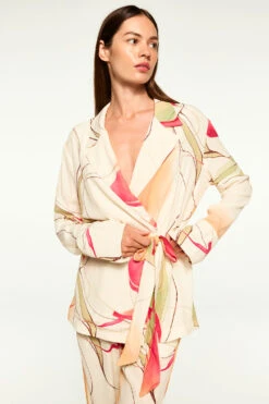 Our Freja top is a chic and easy long sleeve wrap top cut from our Divine Marble crepe. A fold-over collar with v neckline and long sleeves with wide cuffs. Finished off with a self-tie belt. Pair with the coordinating Rita pant for the perfect set or with jeans for a more casual look.
