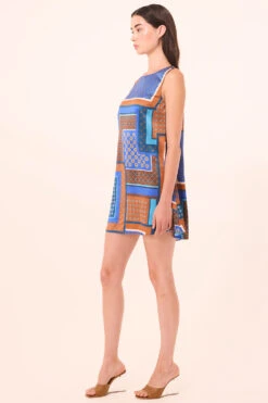 Goldie is a chic mini-length shift dress cut in a striking blue and brown Tile Patchwork print. Designed with a high neckline and A-line, sleeveless silhouette, it’s finished with a keyhole summary back closure. Effortlessly timeless, Goldie can be dressed up or down for any occasion.