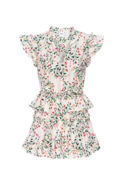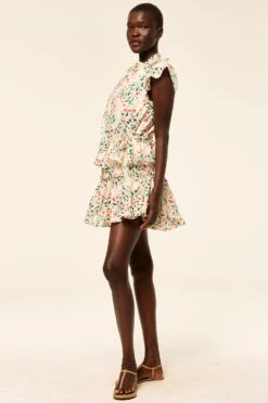 Sweet and sophisticated, our Iliana dress features a split v-neckline, short ruffled sleeves, and an elastic waistband with peplum detail. Cut from a breezy Spring Ditsy printed cotton, this feminine mini is double-lined through the skirt and finished off with an ruffle-trimmed hem. Pair with your favorite sandals for a timeless Spring look.