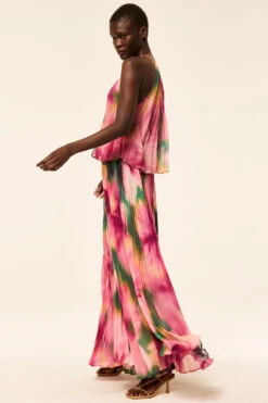 Ilona is a flowing maxi skirt cut from our vibrant, pleated Blurred Hibiscus print chiffon. Featuring a flat band waist with elasticated back. Double lined with a slightly staggered hem. Pair with the coordinating Myra top for a stunning spring set.