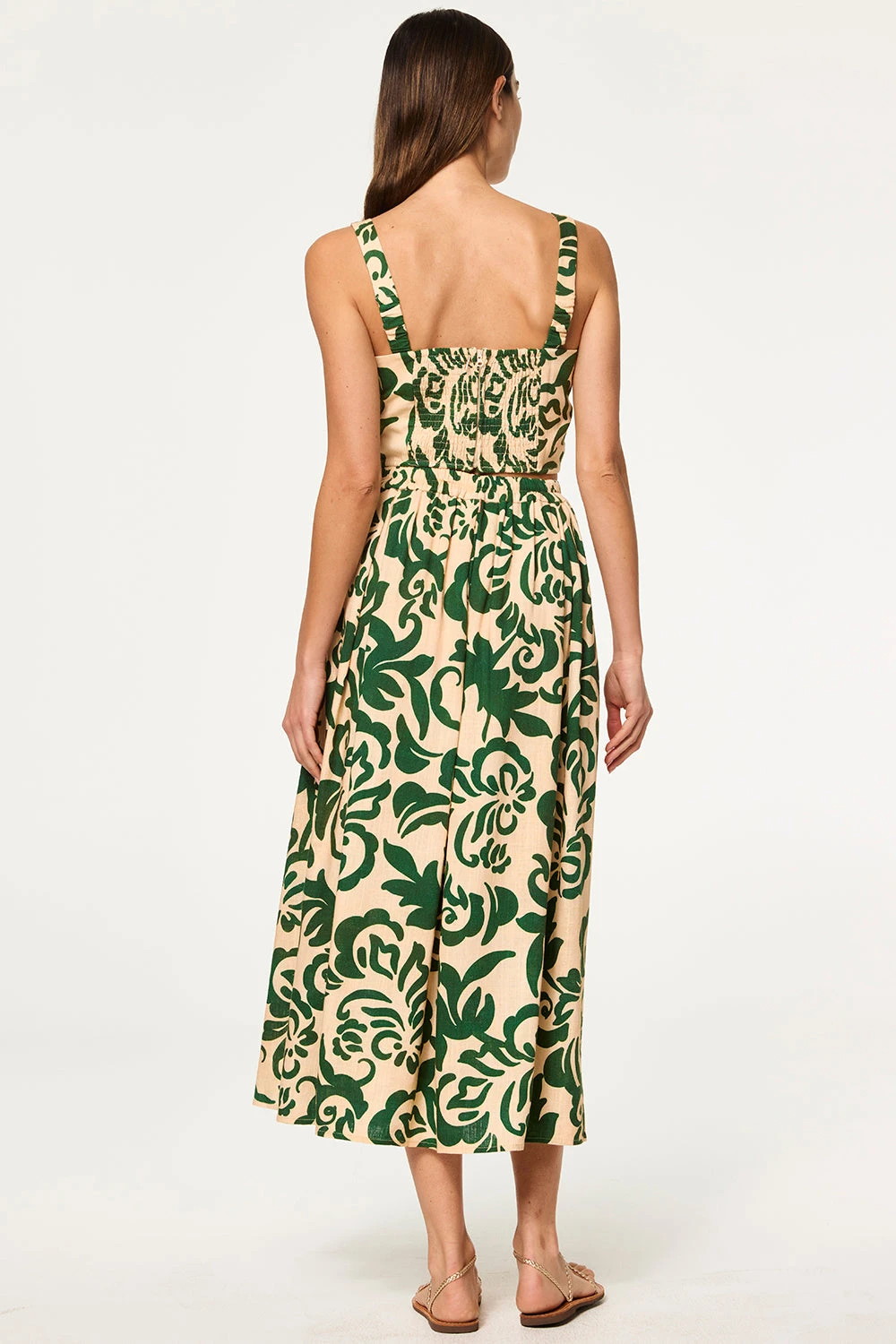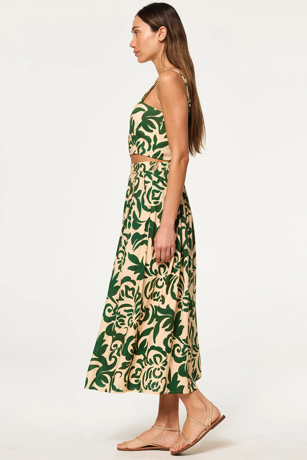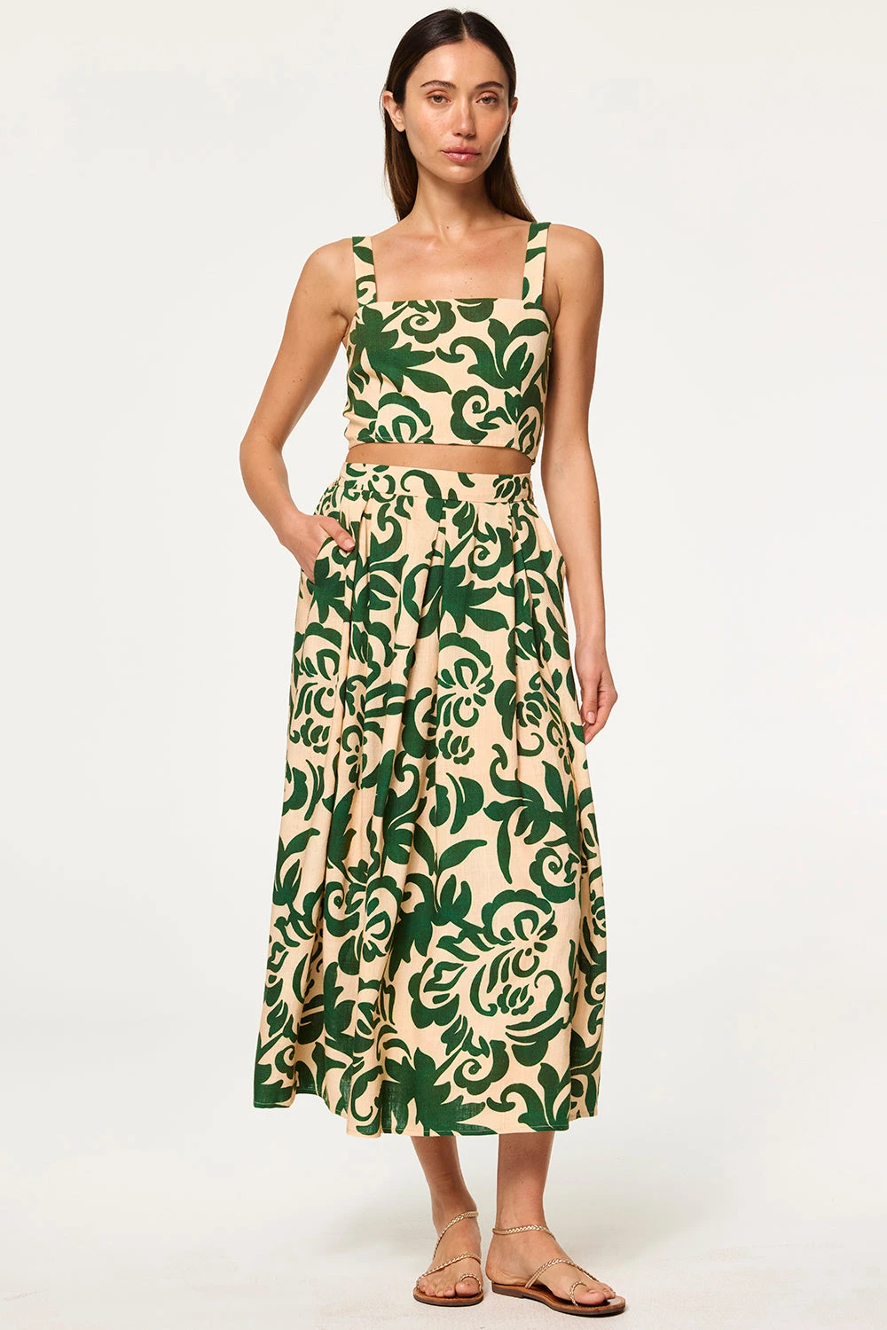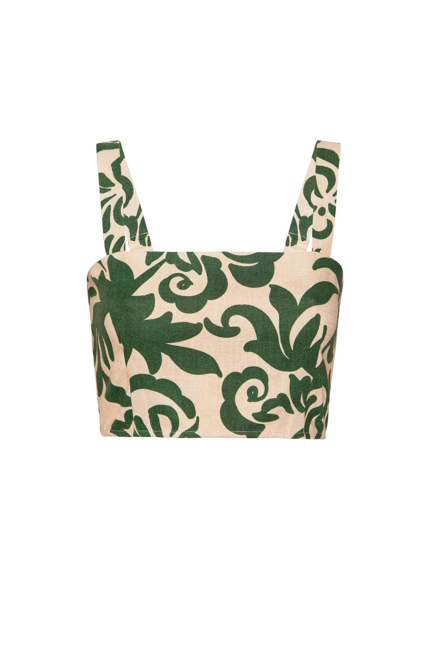 Lois is a sleeveless, fitted crop top that pairs perfectly with the coordinating Aggie skirt. Cut from a Tonal Cactus print linen blend, it features a square neckline and straps with a smocked back and hidden zip closure.
