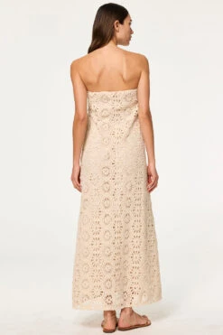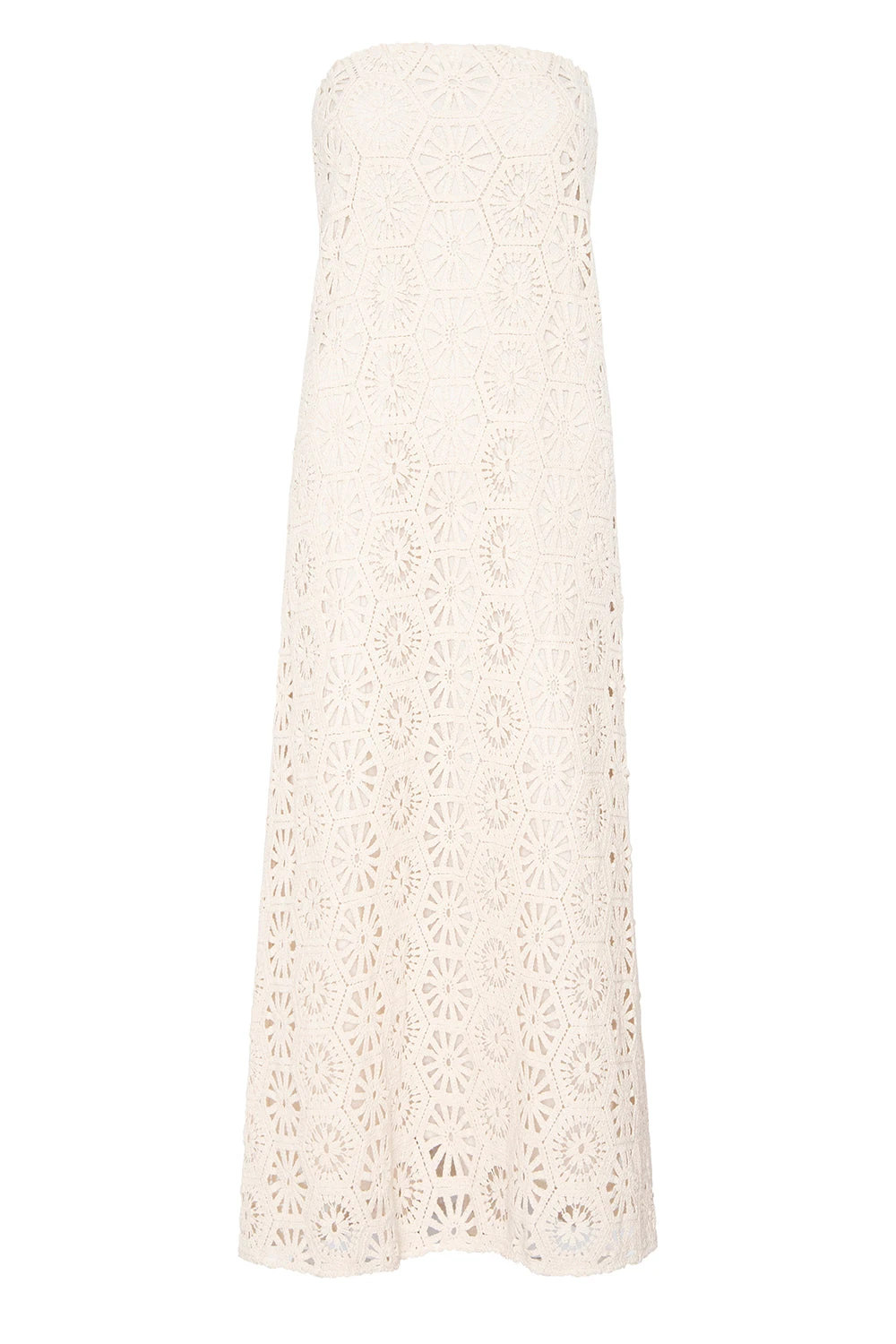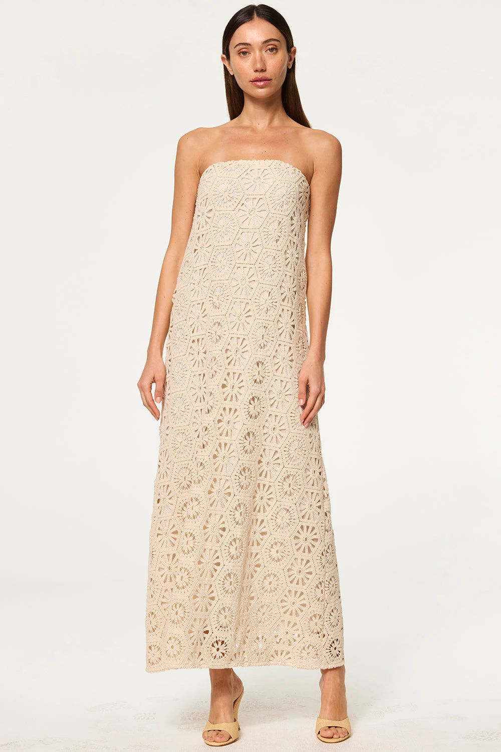 Lucine is the perfect summer maxi, designed in a strapless straight silhouette with beautiful cream crochet detailing throughout. Fully lined with an elasticated bust and hidden back zip closure, this effortless style can be dressed up or down for any summer occasion.