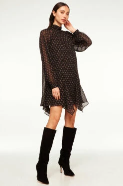 Model Measurements: Height 5’10.5″, Waist 24″, Bust 32″, Hips 35″