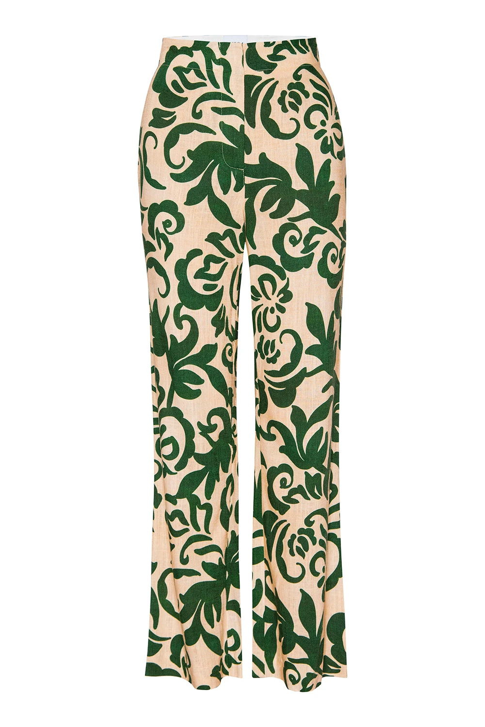 Noreen is a flat-front cropped pant cut from our Tonal Cactus printed linen blend. Designed with a zip fly and hook closure, this easy silhouette features slightly flared legs for a flattering finish. Pair with the coordinating Trista top for a getaway-ready set, or style it with your favorite white tank for a more casual look.