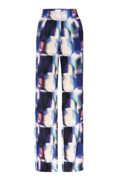 Our high-rise Rita pant is cut from a modern Amethyst Geo printed satin. Featuring straight legs and side slant pockets. A hidden zip front and extended hook-and-bar closure. Pair with the coordinating Inah top for a chic set.