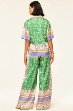 The Selena pant is cut from our gorgeous Matcha Love print satin. These wide leg pants feature a flat band waist with elastic back for a comfortable fit. Double slide slit pockets. Style with the Solange top for a truly special set to take you through Spring and beyond.