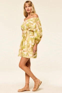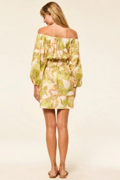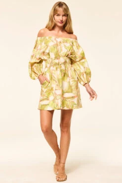The Senia dress is a breezy mini cut from cotton in a soft Chartreuse Abstract print. This versatile off-the-shoulder silhouette features voluminous long sleeves, a gathered smocked waist, and hidden side slit pockets. Designed to be worn on or off the shoulder, it’s the perfect day dress or pack-and-go piece for effortless style.