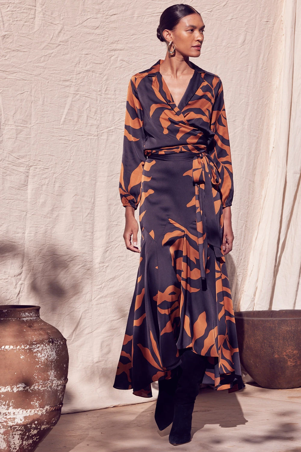 Shelley is our newest maxi skirt featuring a drop waist and slightly high low hem. Cut from our gorgeous Fernal Glow printed satin. Hidden side zip closure. Pair with the coordinating Darcy top or with one of our Nadja tops.