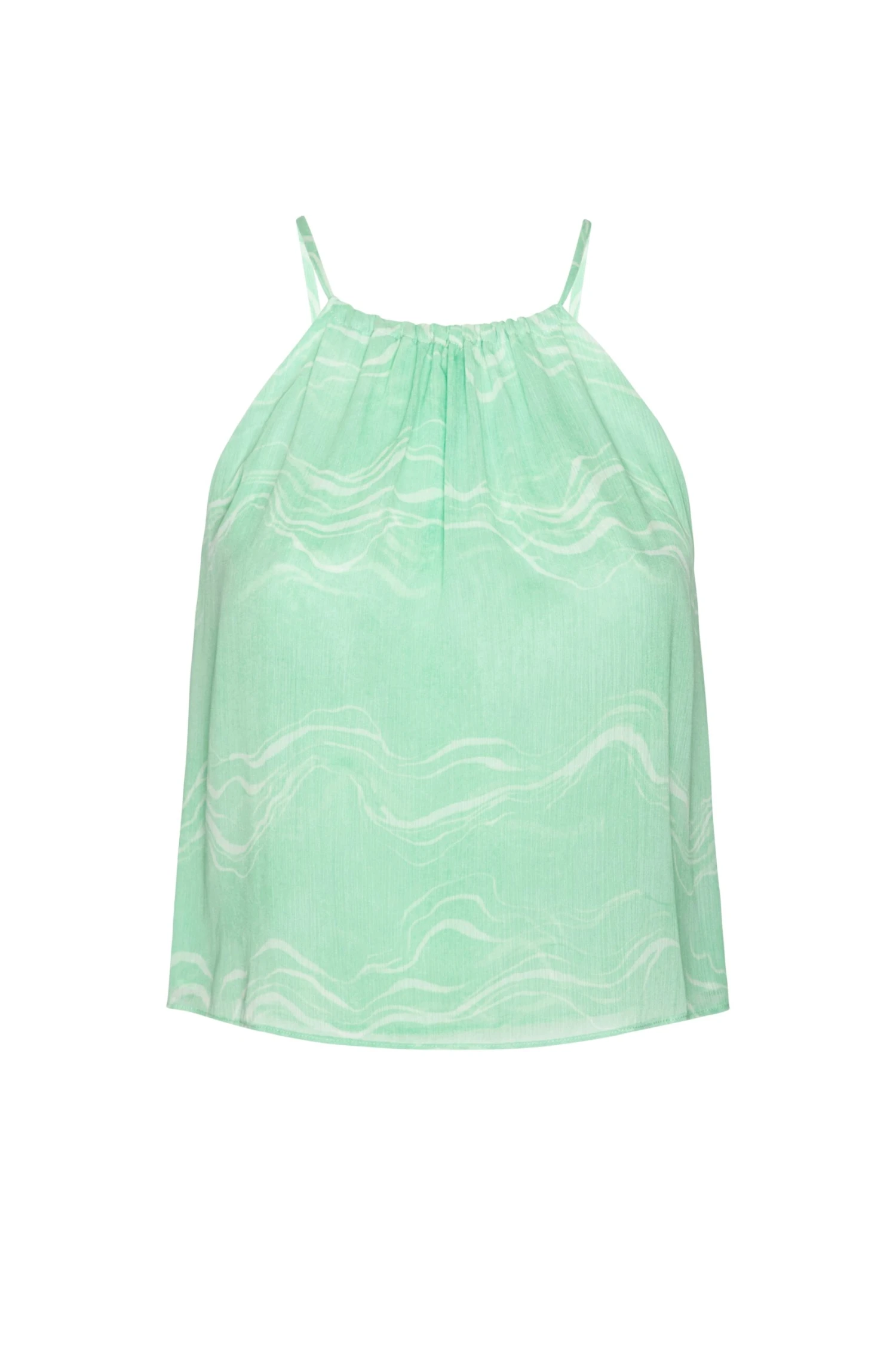 Thelma is a breezy cropped halter top cut from our Seafoam Linear Wave chiffon. Designed with thin straps and a back keyhole summary closure, this double-lined silhouette offers an effortless fit. Pair with the coordinating Louise skirt for a striking set or style with jeans for a more casual look.